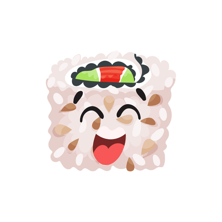 かわいい幸せな笑い寿司キャラクター 白い背景に面白い顔漫画ベクトルイラストでロール のイラスト素材 ベクタ Image